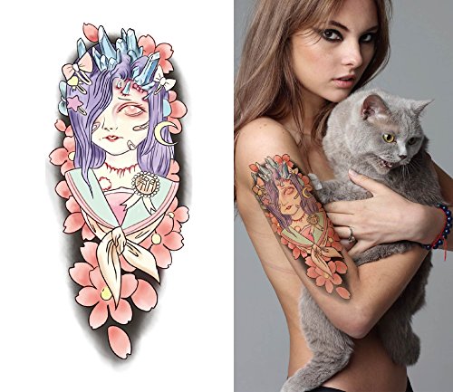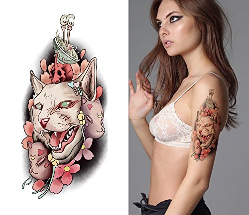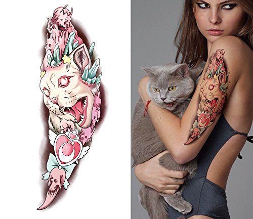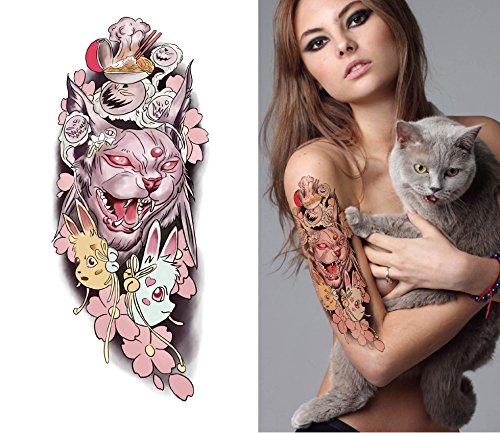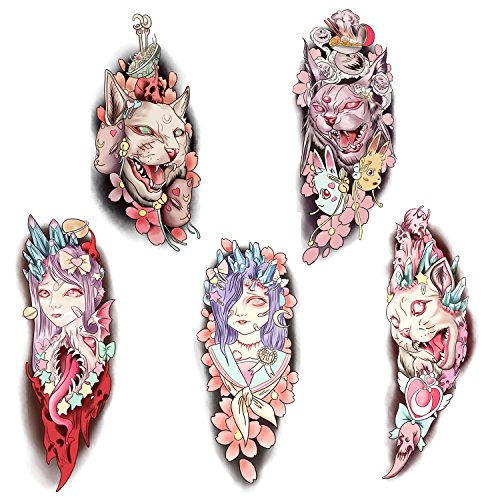 Ferrol Half Arm Temporary Tattoo , Lovely Girls And Cat Fake Tattoo Sticker . ( 5 Sheets )