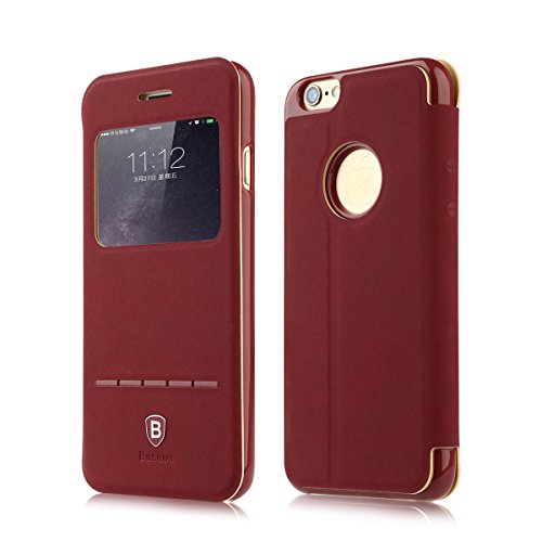 [Bear Life] Smart Touch Answering Leather Case Folio Flip Cover for iPhone 6 6S Plus Window View Function for Christmas Gift (5.5 inch) (Dark Blue)