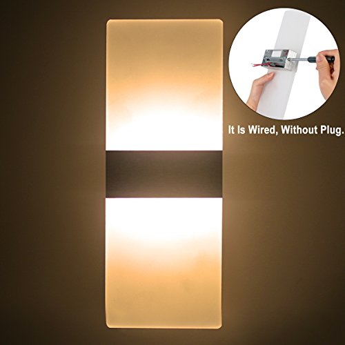 Modern Acrylic AC 85-265V 6W LED Wall Lamp Light Sconce Decorative Light Fixture for Bedroom, Living Room, Balcony, Corridor, Bar, Coffee House, Warm White(It Is Wired, Plug Not Include)