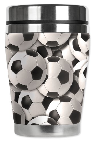 Mugzie Soccer Balls "Mini" Travel Mug with Insulated Wetsuit Cover, 12 oz, Black