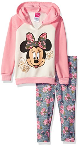 Disney Toddler Girls' 2 Piece Minnie Hooded Sweatshirt with Legging, Peach, 2T