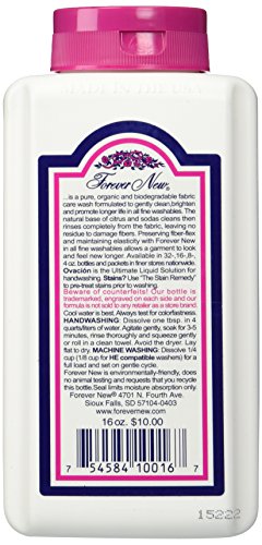 Studio : Forever New Publisher : Forever New Binding : Health and Beauty Product Description Forever New Fabric Care Wash is a pure, organic and biodegradable fabric wash formulated to gently clean, brighten and promote longer life in all fine washables. It safely cleans lingerie, hosiery, swimwear, silks, woolens and other colorfast delicates. A natural base of citrus and a multiple sodas, cleans then rinses completely from the fabric leaving no soap residues to damage thread fibers. Forever New preserves fiber-flex and elasticity, allowing all fine garments to look new longer.It's non-toxic, biodegradable and never tested on animals. 0