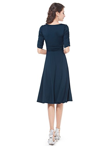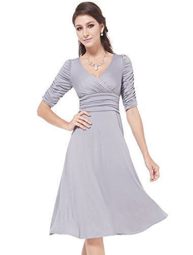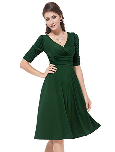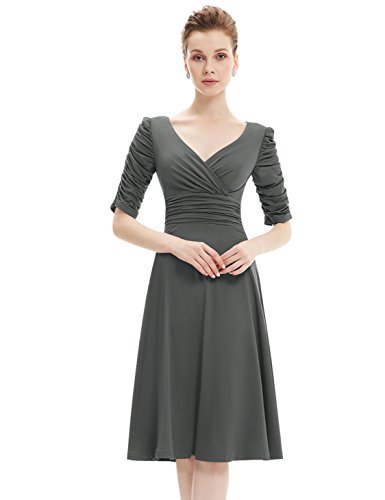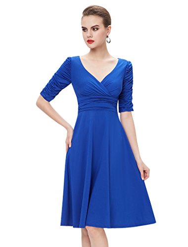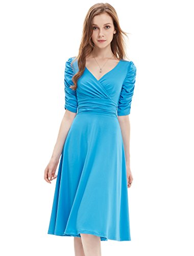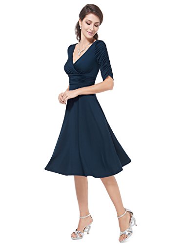 Sexy v neck cocktail dress. 3/4 sleeve style with ruffles. Simple, versatile design makes this dress appropriate for a wedding, a party, or casual wearing.