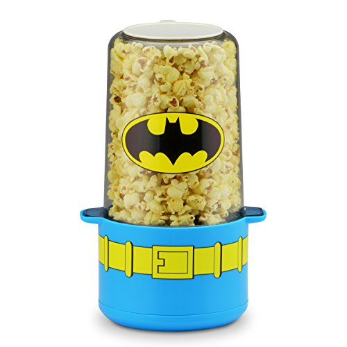 The DC Superman mini stir popper makes 6 cups of fresh and delicious popcorn in just minutes. With a simple push of the button, the heat and stainless stir rod are activated. Kernel and oil scoops are included for the ideal popcorn to oil ratio. The BPA-free Tritan top doubles as a serving bowl when finished popping. Now kick back and enjoy the feature presentation.Feature