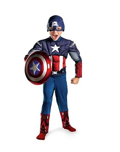 -. Brand : Cosplay Costume -. Department : Mens -. Feature : Suitable height:S 110-120cm,M 120-130cm,L130-145cm. / Size: Child XS(3T-4T), S(4-6), M(7-8), L(10-12) / From Captain America: The First Avenger Movie / The item does not include any accessories (show on the pictures) / Fabric mask included -. ProductGroup : Apparel -. ProductTypeName : ADULT_COSTUME -. Title : FCCO Captain America Movie Classic Muscle Costume