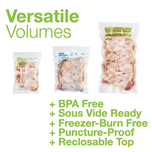 ECONOMICAL, REUSABLE EASY-TO-USE BAGS: Oliso Bags are extremely Easy and Fast to use. Simply put your food in, then use the Zip Disk to close the Air Tight Zipper. Once the item has been vacuum sealed, simply open the Resealable Zipper End to add or remove food, then close and reseal again! The Bags are BPA-free, Washable, and can be Reused 10+ times. In combination, the Oliso Vacuum Sealer and Oliso Bags are a great Money-Saving Tool that can save you Hundreds of Dollars a Year on groceries!