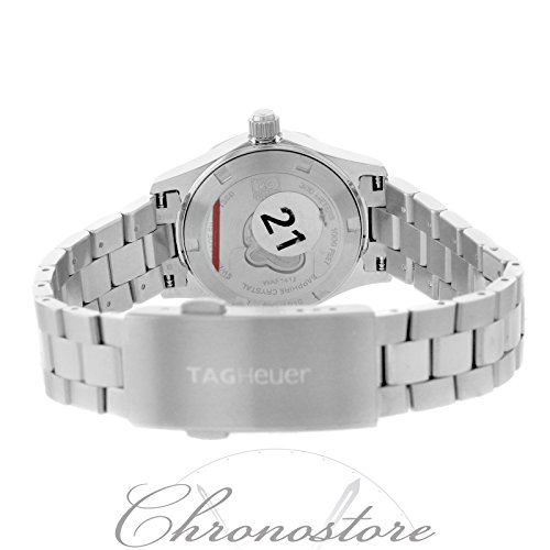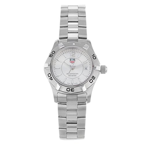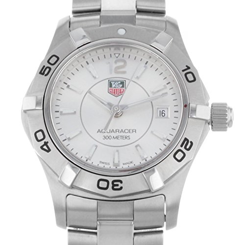 -. Binding : Watch -. Brand : TAG Heuer -. Color : Silver/Steel -. Department : womens -. EAN : 0961613301871 -. Feature : Round watch in stainless steel with two-tone band and logo on dial / Swiss quartz movement with analog display / Protective sapphire crystal dial window / Features date window, unidirectional bezel, and fold-over clasp with double push-button safety / Water resistant to 990 feet (300 M):suitable for scuba diving to a depth of 30 meters for up to 2 hours -. Label : TAG Heuer -. Manufacturer : TAG Heuer -. Model : WAF1412.BA0823 -. MPN : WAF1412.BA0823 -. NumberOfItems : 1 -. PackageQuantity : 1 -. PartNumber : WAF1412.BA0823 -. ProductGroup : Watch -. ProductTypeName : WATCH -. Publisher : TAG Heuer -. ReleaseDate : 2014-09-30 -. Studio : TAG Heuer -. Title : TAG Heuer Women's WAF1412.BA0823 "Aquaracer" Stainless Steel Dive Watch -. UPC : 961613301871