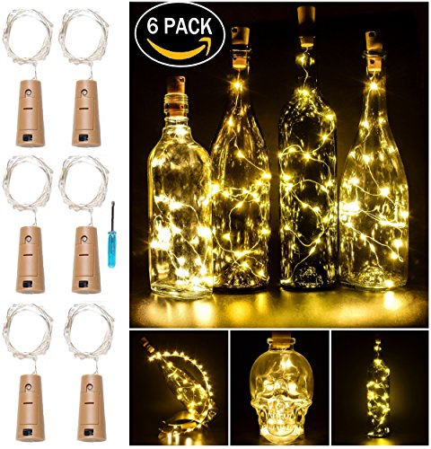 LED Cork Light for Wine Bottle,Starry String Light,Pack of 6, Battery Powered,30inches/75cm,15 LEDs ,for DIY, Party, Decor,festivals,Wedding(Warm White)