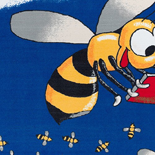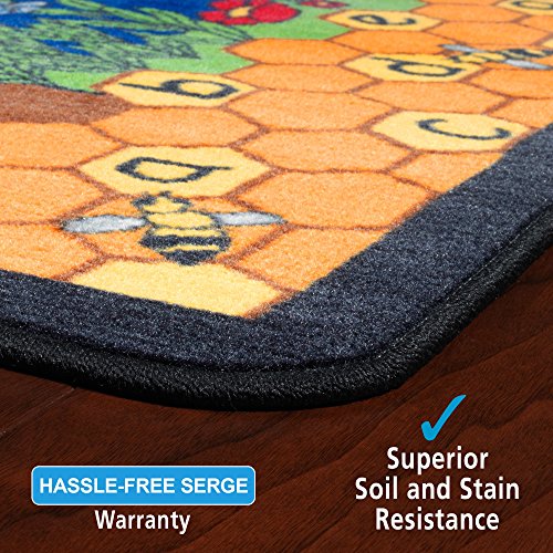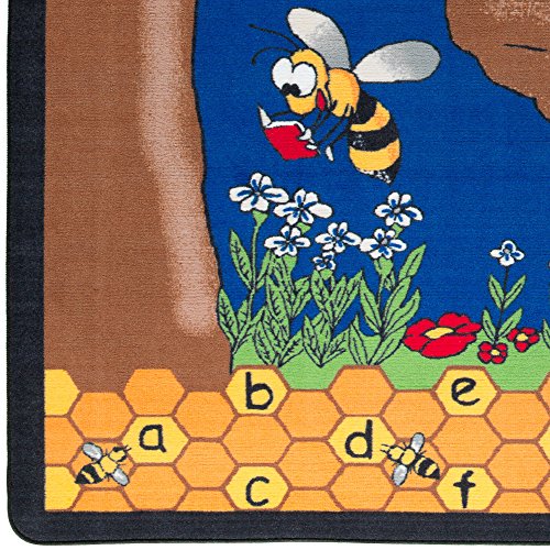 Flagship Carpets FE140-34A Busy Bee with Letters Rug, Help Kids Understand Upper and Lowercase Letters, Children's Classroom Educational Carpet, 6' x 9', 72" Length, 108" Width, Blue/Multi-Color