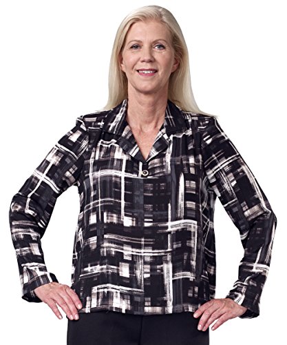 Binding : Apparel Product Description Stylish Long Sleeve Adaptive Apparel for Women Blouses Simplified for Caregivers. Full back overlap with double snaps at shoulders and neck. Decorative button. Snap back blouses and back snap dressing solutions make dressing a breeze for both the individual being dressed and the caregiver assisting in the dressing. This womens adaptive nursing home blouse completely opens up, allowing the individuals arms to be slid into the garment sleeves without ever having to raise/lower their arms or struggle with small neck openings. The back overlap is then folded over and domed/snapped into place. This womens adaptive nursing home blouse is terrific for elderly/seniors who suffer from arthritis or are disabled or wheelchair dependent. Machine washable polyester. This adaptive blouse is terrific for nursing home residents, individuals in home care, or hospital patients. If you know someone who requires adaptive apparel or handicap clothing this adaptive blouse makes a great gift choice. This item is usually offered in a full figure plus size range. Silvert's has spent years working with family caregivers and medical healthcare professionals to provide the best adaptable most accessible clothing designs for seniors, disabled adults and bed ridden people at the most affordable of prices. Adaptive Top Sizing: S (4-10) M (12-16) L (18-20) XL (20 1/2-24 1/2) 2XL (26 1/2) 3XL (28 1/2) 0