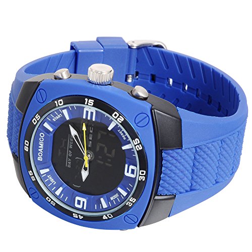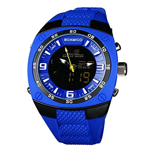-. Title : BOAMIGO Men's Sports Watches Dual Time Led Digital Analog Quartz Wristwatches Blue Rubber Strap F602BLUE