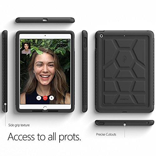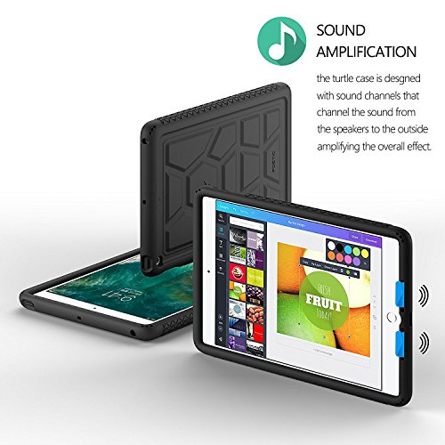 Poetic TurtleSkin New iPad 9.7 Inch 2017 Cover Case With Heavy Duty Protection Silicone and Sound-Amplification feature with Portable Tablet Stand for Apple iPad 9.7 (2017 MARCH Released) Black