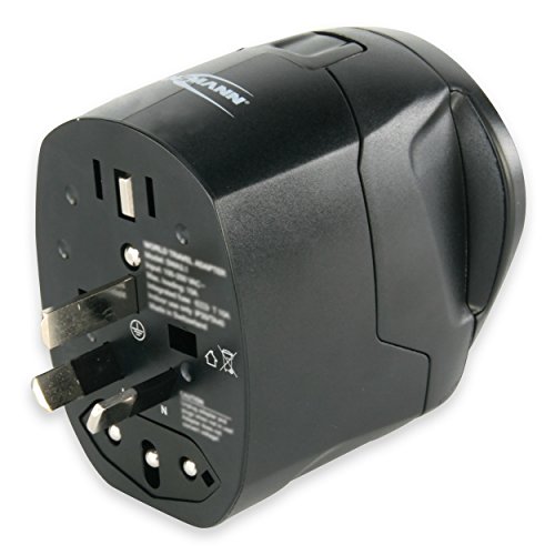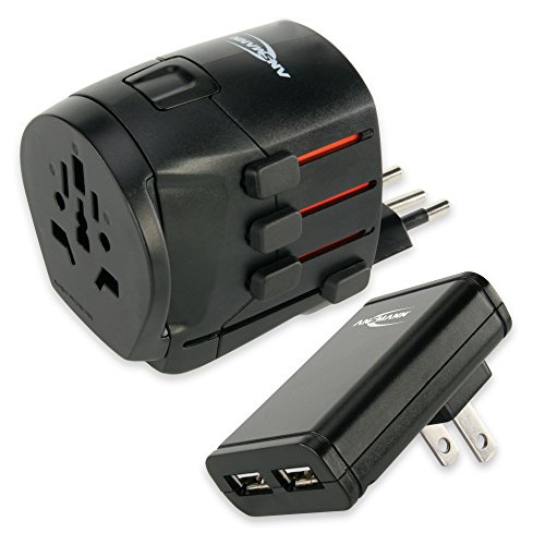 ANSMANN All in One 3 Universal Travel Adapter worldwide (US, UK, EU, AU) Travel Power Plug World Charger AC Power Socket International + Dual USB Charger