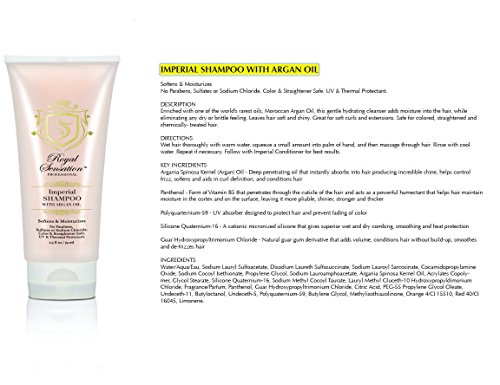 • REJUVENATES DRY AND BRITTLE HAIR: Using Argan Oil shampoo, customers experience significant visible reduction of dull, damaged hair. Contains a UV and Thermal Protectant with Vitamins and Antioxidants, that nourish and repair dry hair from daily use of a blow dryer, straight iron or curling iron, or chemically treated hair. Long-term benefits are hair that is healthy, shiny and youthful in appearance.