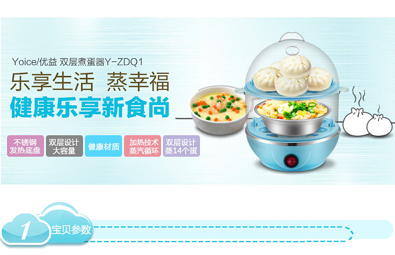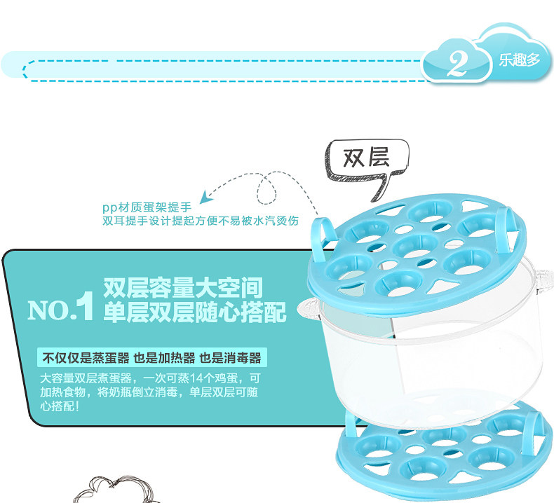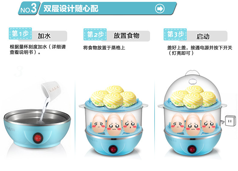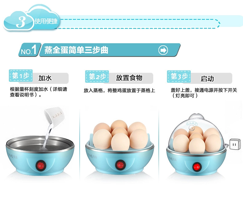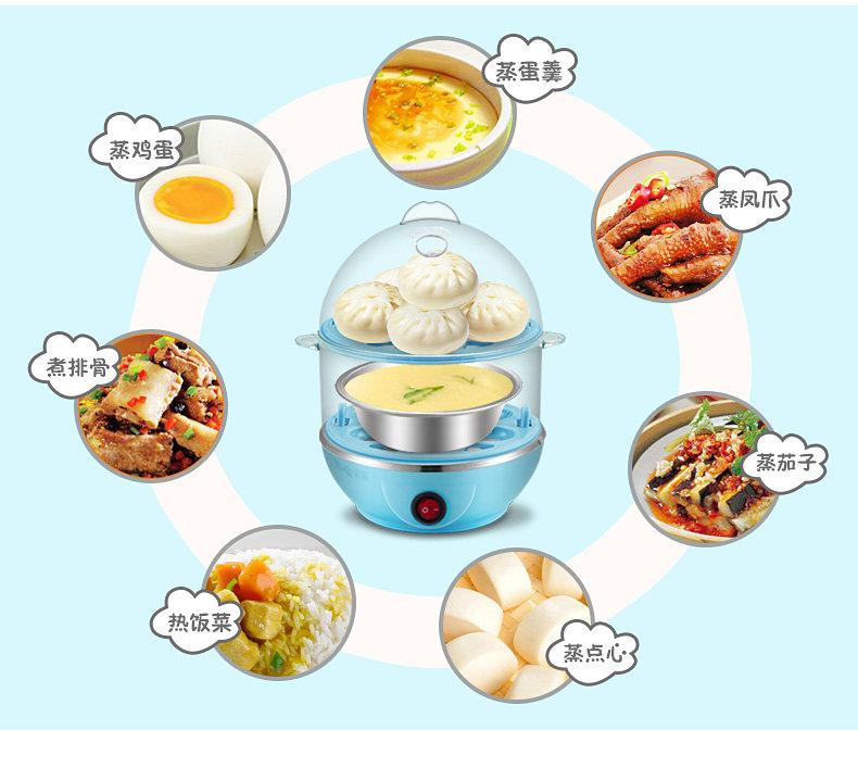 ?3、一机多用:蒸蛋羹、蒸小吃;一次可煮14个蛋