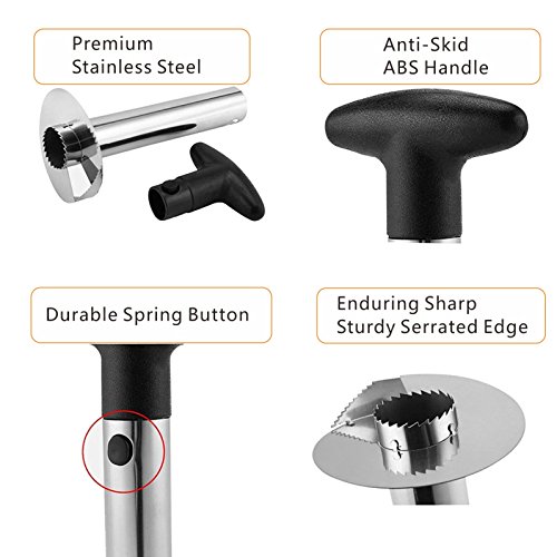 Safe & Durable Material - The Pineapple Corer Slicer Cutter is made from pure food grade 304 (18-10) stainless steel pipe and blade, which is BPA-Free with High quality ABS handle and rugged flexible spring button