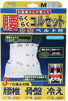 -. Title : 山田式 腰らくらくコルセット 骨盤ベルト付 腰用 Mサイズ (ウエスト65~85cm/ヒップ75~95cm) 白