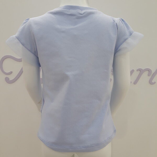 고급스러운 블루칼라에 신축이 좋은ㅊ스판싱글원단의 소매샤 프릴 티셔츠입니다. 소매 샤 프릴장식과 애리라인 카라모양 핫픽스장식이 입었을때 더욱 더 빛을 발하는 아이템입니다.