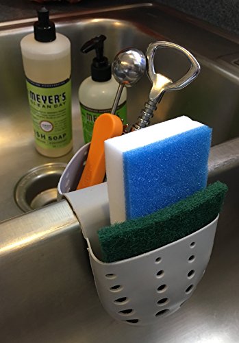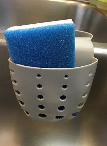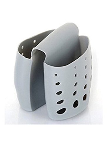 Adams of Saratoga Kitchen Sink Plastic Draining Saddle Sponge Holder, Sponge and Scouring Pad Caddy-Grey
