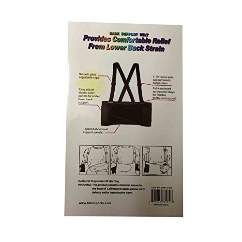 -. Binding : Misc. -. EAN : 0691374334848 -. Feature : 1 pc / per order , XXL - Size 44"-53" / 8" elastic back panel, 5" wide elastic side pull, 1-1/4" extra wide support elastic suspenders / Enclosed spring steel stays for flexible contoured support / Tapered abdominal positive Velcro front panels / Provides comfortable relief from low back pain -. Label : Tuff Built -. Manufacturer : Tuff Built -. ProductGroup : Home Improvement -. ProductTypeName : TOOLS -. Publisher : Tuff Built -. Studio : Tuff Built -. Title : Back Support Belt & Waist Brace W Adjustable Suspenders Black XXL 44"-53" (112-135cm) -. UPC : 691374334848