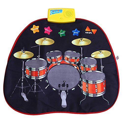 Lightahead® Jazz Drum Musical Mat. Musical Jazz Drums learning play mat. Perfect toy to entertain and teach your child. Sense of touching: Developing children's sense of touching and feeling. Music intelligence: Training children's sense of rhythm and melody. Sense of hearing: developing children's sense of hearing and sound understanding. Vision training: Training aesthetic eyes and creativity. Functions 1. Total 16 buttons, 2. DEMO:put the on/off to play 2 Demo songs. 3. MODE: mode switch button (free play-perfect performance-free play), 4. RECORD: it is able to record at most 18 pieces of drum which you played, 5. REPLAY: play the recorded drum, 6. Vol+:turn up the volume, 7. Vol-:turn off the volume, 8. 1 2 3 4 5 6 7 8 9 10 button: drum key, 9. After the sound close, the system will enter into the "power saving mode" automatically without any key pressed in 5 minutes. 10. In"Power saving mode" , it'll be invalid to press any keys, the system will re-start only if player press the ON/OFF or reset button. Completely non toxic. Suitable for children 3 years and above. Requires 3 x AA battery's (not included). Material: plastic, fabric, foam, sponge. Makes a perfect gift to your child.Feature