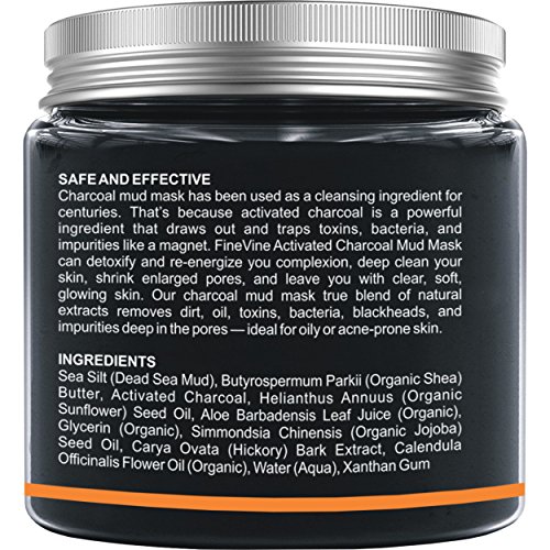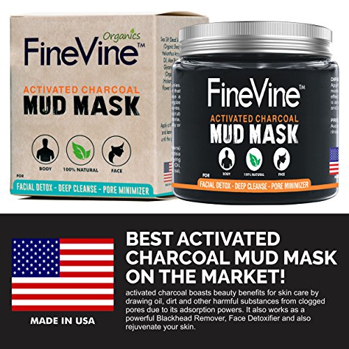 -. Feature : BEST CHARCOAL MUD MASK - activated charcoal boasts beauty benefits for skin care by drawing oil, dirt and other harmful substances from clogged pores due to its adsorption powers. It also works as a powerful Blackhead Remover, Face Detoxifier and also rejuvenate your skin. / MULTI FUNCTION FACE MASK - For Facial Treatment, Minimizes Pores, Reduce Wrinkles and Improves Overall skin texture. FineVine Active Charcoal Facial Mud Mask Provides Relief from Acne, Blackheads, Pimples, Acne Scars and Cellulite. / MULTI-USE SKIN DETOX - Used on Body ,Foot ,Hand ,Nose ,Neck ,Face. / MADE IN USA - Our Charcoal Mask is Made GMP Certified Manufacturing Facility and Contains No Kaolin ,No Glycerin ,No Color ,No Fillers ,No Preservative, No Paraben and Cruelty Free. / PORE MINIMIZER FACIAL MASKS - With this Anti-Aging Charcoal Mask, enjoy the amazing age defying qualities of this premier rejuvenating facial treatment. At any age, it minimizes and cleanses clogged pores, smooths the skin's, and ensures a flawless and noticeable skin texture. For normal, combination or oily skin types.