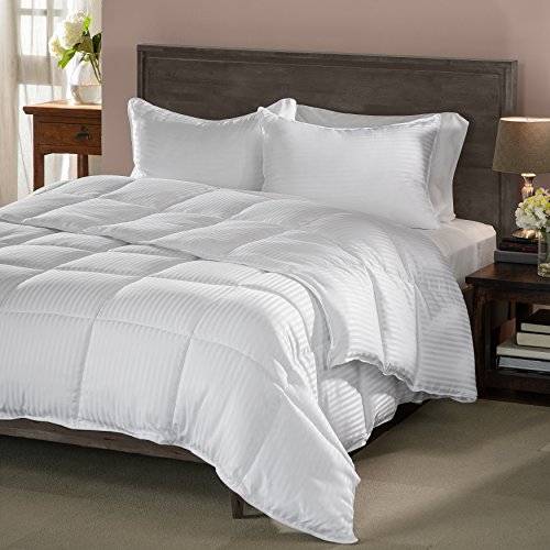 -. Title : Superior White Down Alternative Pillow 2-Pack, Premium Hypoallergenic Microfiber Fill, Medium Density for Back, Stomach, and Side Sleepers - Standard Size, Striped White