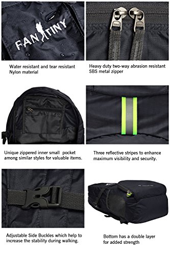 -. Brand : CIOR -. Department : unisex-adult (lage only) -. Feature : DURABLE. This FANTINY Backpack is made with high quality tear and water resistant material, provides extra strength and long-lasting performance with the lightest weight possible. The extra strength provided by the double-layer bottom piece makes it very convenient to carry more load on your journeys. Heavy duty two-way SBS metal zippers across the backpack are convenient to operation on whichever side you prefer. Longevity is further enhanced by bar-tacks at major stress points. / COMFORTABLE. Breathable mesh shoulder straps with plentiful sponge padding help relieve the stress from your shoulder. The length of the shoulder straps is adjustable. The chest strap with a whistle buckle help you lock your backpack in place securely. / MULTI COMPARTMENTS and KEEP THINGS ORGANIZED. This backpack features one main zipped compartment, two zipped front pockets and two side pockets. The main compartment provide enough room (35 liters) no matter if it's a day trip or a week long journey. Two separators in the main compartment are convenient enough to help you further organize things. The two front pockets are good for holding small accessories and for easy access. Two side pockets are good for holding water bottles and umbrellas. / LIGHTWEIGHT(0.7LB) and ROOMY(36Liters). A true space saver. Fold the backpack into its own pocket for storage(no more excess baggage fees), and unfold it when you reach your destination. To avoid overweight charge, simply unfold from your checked bags and use it as a carry on for your excess baggage. / COMPACT. Folds into zipped inner pocket to fit anywhere, and unfolds from pocket to backpack in seconds. A must have for every trip.Warranty: Our Promise-lifetime warranty-Exchange, return, whatever it takes. -. IsAutographed : 0 -. IsMemorabilia : 0 -. Label : CIOR -. Manufacturer : CIOR -. Model : FAND024 -. MPN : FAND024 -. PartNumber : FAND024 -. ProductGroup : Sports -. ProductTypeName : OUTDOOR_RECREATION_PRODUCT -. Publisher : CIOR -. Studio : CIOR -. Title : FANTINY Lightweight Foldable Packable Durable Travel Hiking Backpack Daypack LARGE 36L