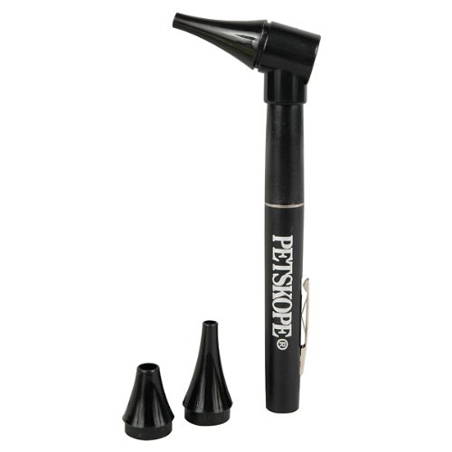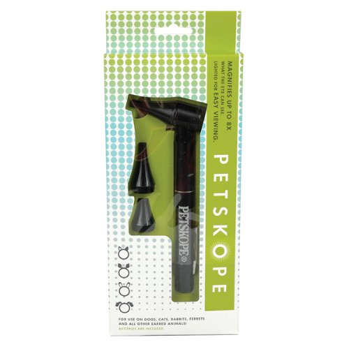 -. Feature : Safe and easy to use. / Lightweight portable tool designed for concerned pet owners. / It can be used to detect earmites, ticks, fleas, and infections. / The high intensity lighting and high resolution optics (8X magnification) can help you determine if a trip to the veterinarian's office is necessary. / 1 1/2 and 2 inch viewing cone provided to accommodate different ear sizes. Durable ABS black plastic. Batteries included.