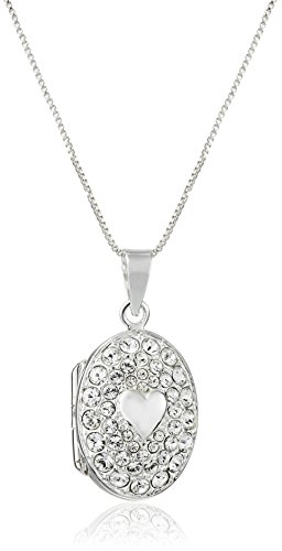 A sweet look that you'll want to wear everyday, the Sterling Silver Oval Cubic Zirconia and Heart Locket features sparkling cubic zirconia inset on a charming locket. The sparkling gems feature a pave setting--where stones are set close to the surface for added shine. The center of the oval-shaped locket features a small heart shape. The locket is 1.05 inches long and opens, so you can keep a small photo of your special someone. The locket hangs on a box-style chain for a modern look and is secured with a spring-ring clasp. The 18-inch length is versatile enough for you to wear it with any style of collar.Feature