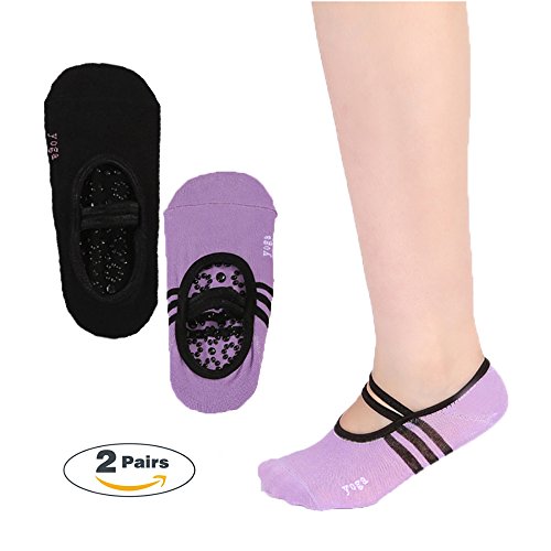 -. Title : Yoga Socks Non Slip Skid Pilates Barre with Grips Low Cut Cotton 2 Pairs
