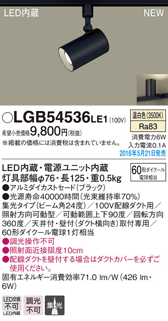 ●寸法(mm):灯具部幅φ76・長125