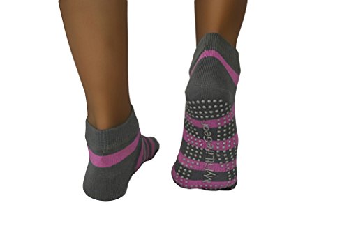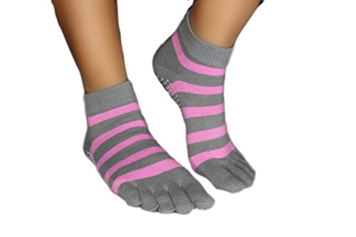 -. Feature : DESIGN & STYLE: Closed-toe design protects your feet | elastic midsection provides a snug fit and better support | Unique striped design lets you stand out from the crowd / TRACTION: Non slip with silicon dots offer superior grip for improved stability and balance to enjoy an injury free workout / MULTI PURPOSE USE: Great for yoga as well as pilates, barre, bikram, trampoline, bounce houses, dance and simply lounging around the house / MATERIALS: 78% Cotton, 17% Lycra, 5% Elastic | Machine washable in cold water / NO RISK GUARANTEE: If you're not satisfied with your purchase at any time within 60 days, you may return it to us and receive a full refund or replacement.