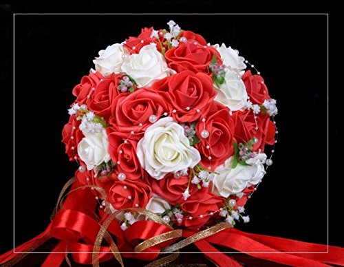 - Title : Hestian 10" Purple and White Roses with Pearls Chain , Beautiful Ribbon Bridal Wedding Bouquet Silk Rose Hand Tie (30pcs Roses) (red and white)