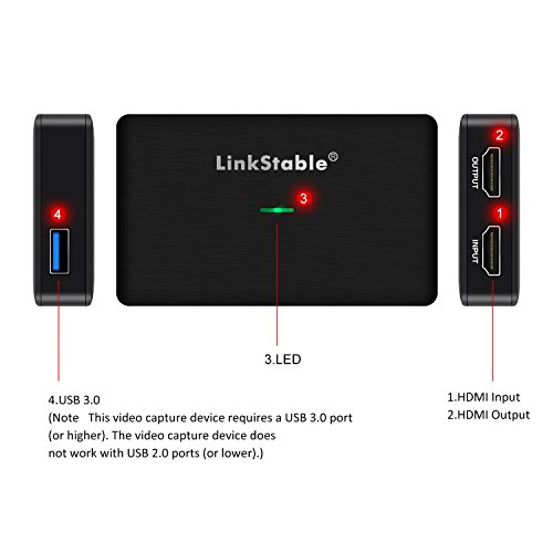 LinkStable HD Game Capture - USB 3.0 connection HDMI video capture device (1080p / 60fps compatible) games / TV / TV video recorder