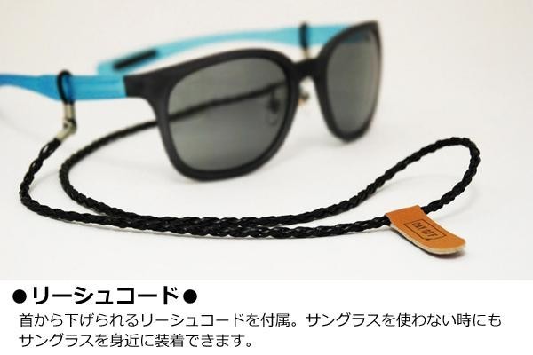 | 素材・材質 | フレーム:ナイロン レンズ:ポリカーボネイト リーシュコード:ポリウレタン(紐)、鋼線(金属部)、シリコーン(ゴム) |