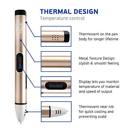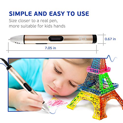 3D Pen by K.G.M., Innovative Arts and Crafts 3D Gold Model with LCD Screen, Drawing Printer Pen Upgrade Model, No Mess, Non-Toxic Paint, Next Generation 3D Scribbler with OLED Display, Gift Set