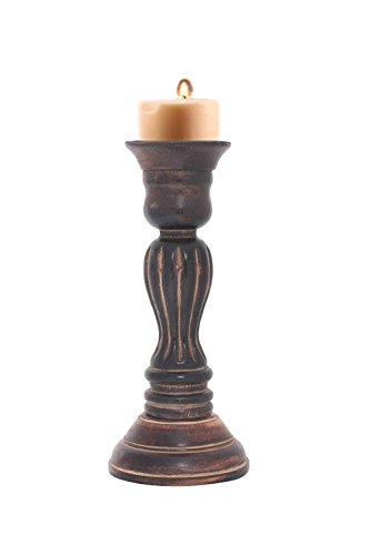 IndiaBigShop Wooden Candle Pillar Stand, 11.5 inch T-light Holder