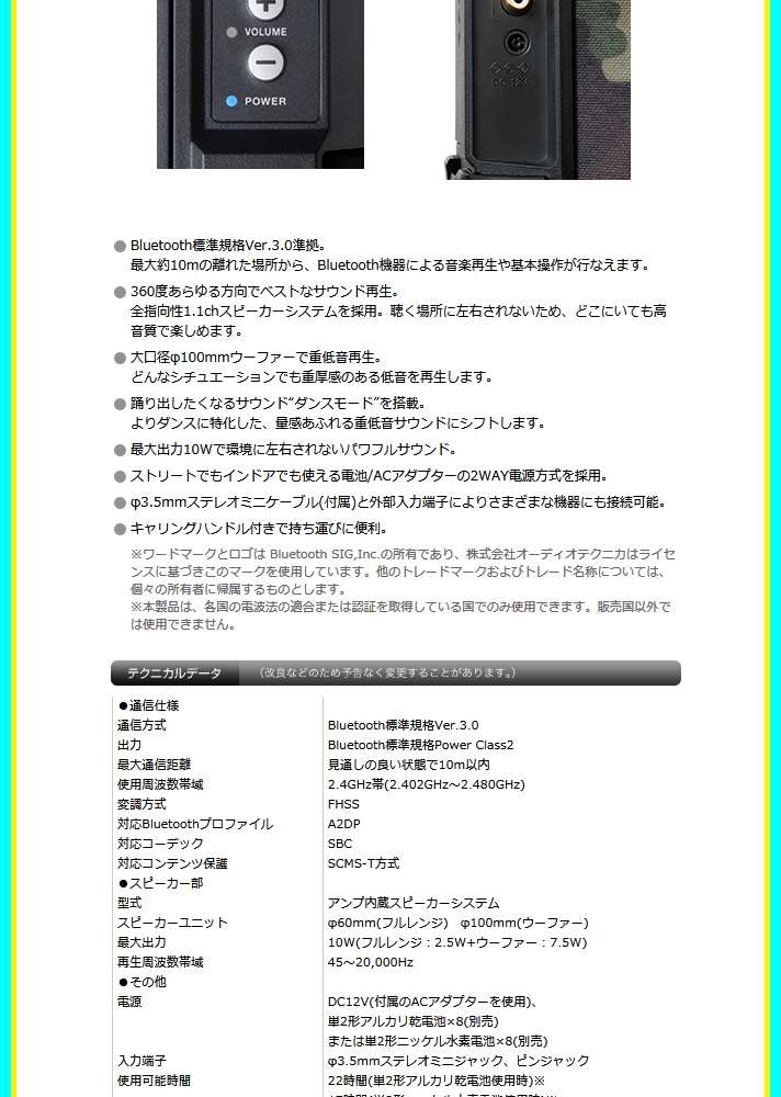 ●オーディオテクニカ AT-SPB70BT-CM Bluetooth対応ワイヤレススピーカーシステム(カモフラージュ)
