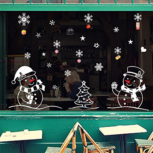 Christmas Wall Decal Snowman Tree and Snowflake Decorations for Home Shop Window Coverings Decor Wall Stickers Holiday Celebration Presents