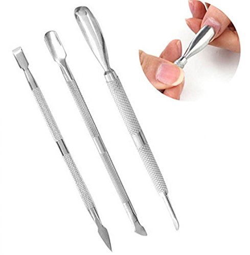 -. Feature : Splendid Cuticle Nail Pusher Spoon Remover Manicure Pedicure Care Tools Set Color Silver / Dual-end Pusher, Manicure Tool, Multifunctional / Material Stainless Steel / Length 13cm/5.12" (Approx.) / Package Include 1 x Cuticle Tool Set (Includes 1 Pc Cuticle Remover, 1 Pc Cuticle Spoon, 1 Pc Cuticle Pusher) / 100% Brand New and Satisfaction Guaranteed