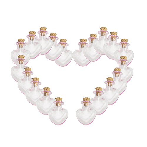 20 Counts Pink Mini Love Heart Shaped Glass Bottles with Cork Small Wish Bottles Note Craft Glass Jars by SHXSTORE