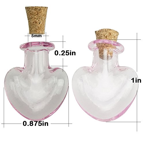 - The size of heart shaped bottle is 1*0.9 inches, the inner diameter of the bottle is 0.25 inch, the height of cork is 0.3 inch.