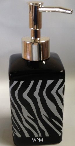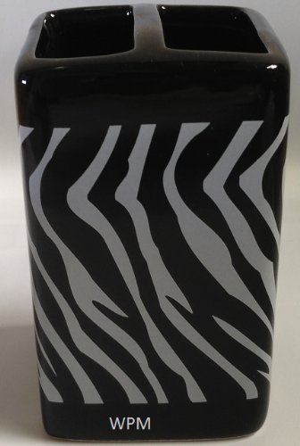 -. Feature : 4 Piece CERAMIC Animal P.R.INT Black White Zebra Bath Accessories Set / 1 Soap Dispenser / 1 Soap Dis / 1 Toothbrush Holder / 1 Tumbler