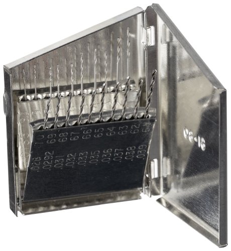 Chicago Latrobe 150D Series High-Speed Steel Jobber Length Drill Bit Set with Metal Case, Uncoated (Bright) Finish, 118 Degree Conventional Point, Wire Size, 20-piece, #80 - #61