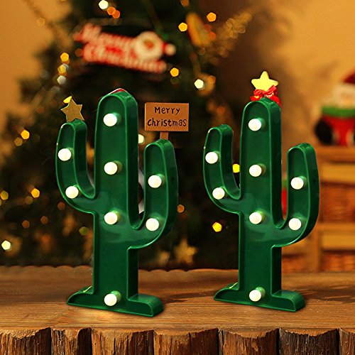 BRIGHT ZEAL [Set of 2] 10" Green CACTUS LED Marquee Signs with Lights - Cactus Decor Bedroom Decorations - Christmas Decorations for Home Signs Xmas Lights Battery Operated Christmas Lights With Timer