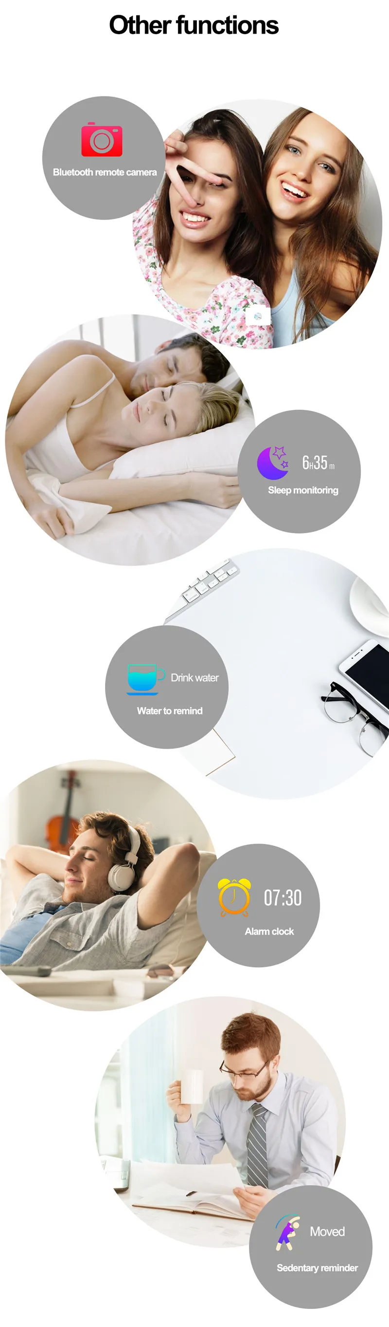 Function:Message Reminder,Passometer,Fitness Tracker,Call Reminder,Sleep Tracker,Heart Rate Tracker