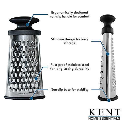 Best Cheese Grater and Zester - Sharp, Rustproof Stainless Steel, Non-Slip Handle and Base for Easier, Faster Grating - Compact Design for Easy Storage - Kitchen Accessories by Kent Home Essentials