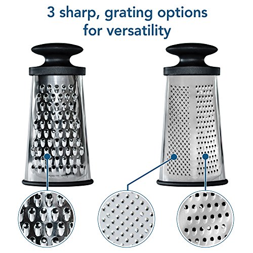 - GRATE WHATEVER YOUR HEART DESIRES - FAST: The strong, ultra sharp stainless steel with 3 grating options won't rust and makes quick work of any zesting, grating, or shredding job, big or small