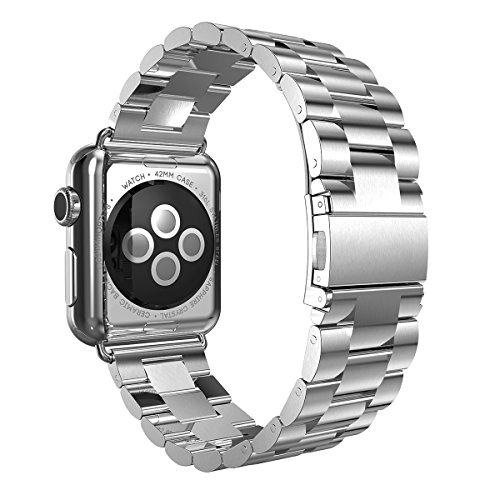 -. Title : 42mm Apple Watch Band Classic iWatch Stainless Steel Metal Replacement Bands with Durable Folding Clasp + WatchBand Size Remover Adjuster